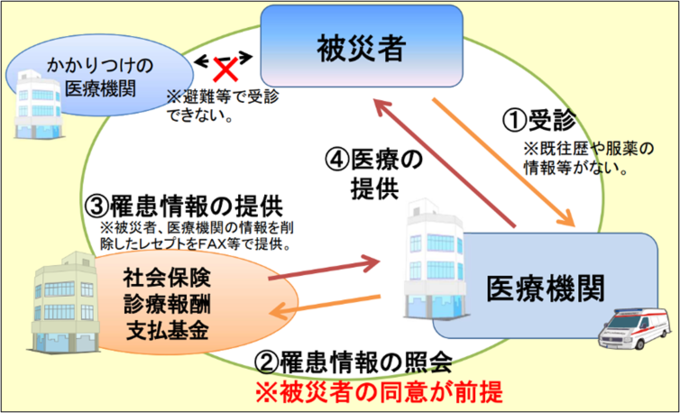 令和8年岩手県大槌町で発生した林野火災に伴う災害の被災者がかかりつけではない保険医療機関等を受診した時に既往歴や薬歴の確認等が必要な場合は、個人情報の取扱いに十分に留意したうえで、支払基金から保険医療機関等にレセプト情報を提供します。